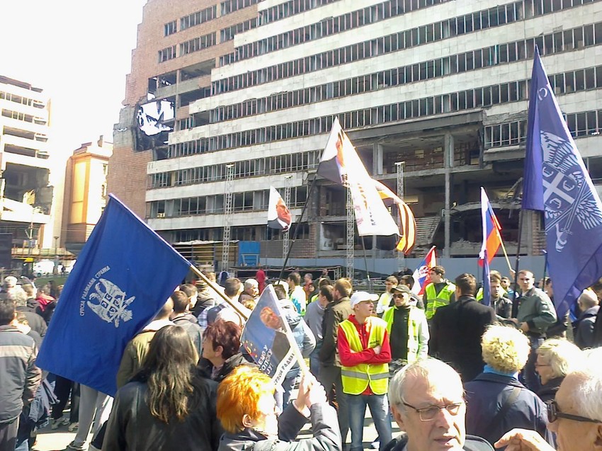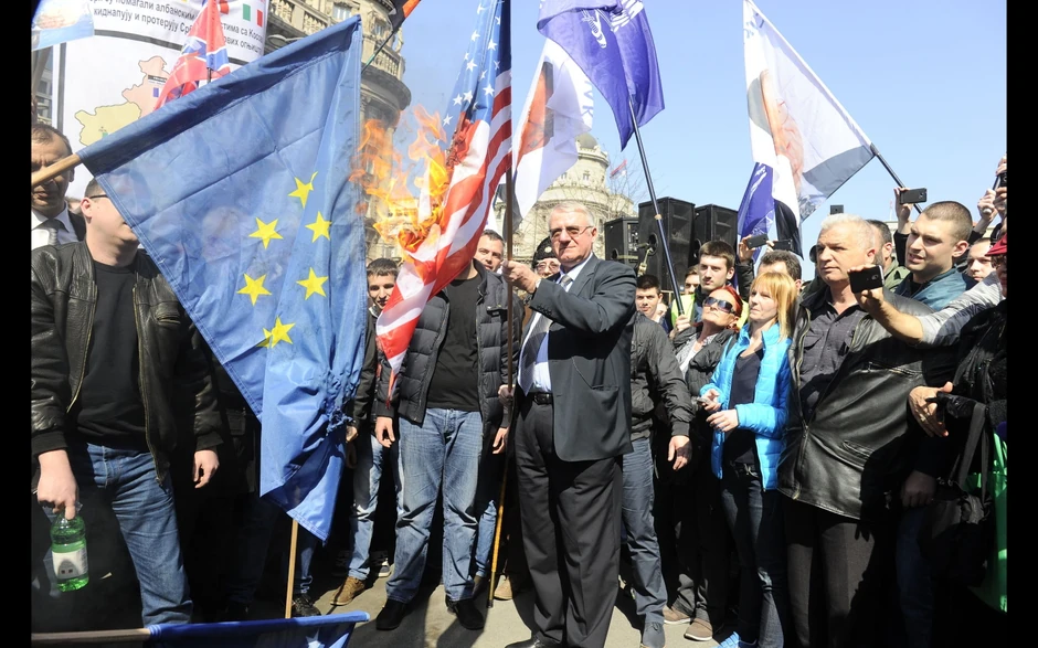 Oko 200 pristalica Srpske radikalne stranke uz uobičajenu ikonografiju okupilo se ispred zgrade Generalštaba kako bi obeležilo godišnjicu početka NATO bombardovanja Srbije. Oni su zapalili zastave NATO, Evropske unije, SAD i Kosova, a potom se, zaustavljajući saobraćaj, uputili trasom preko Londona i Skupštine Srbije do Trga Republike.