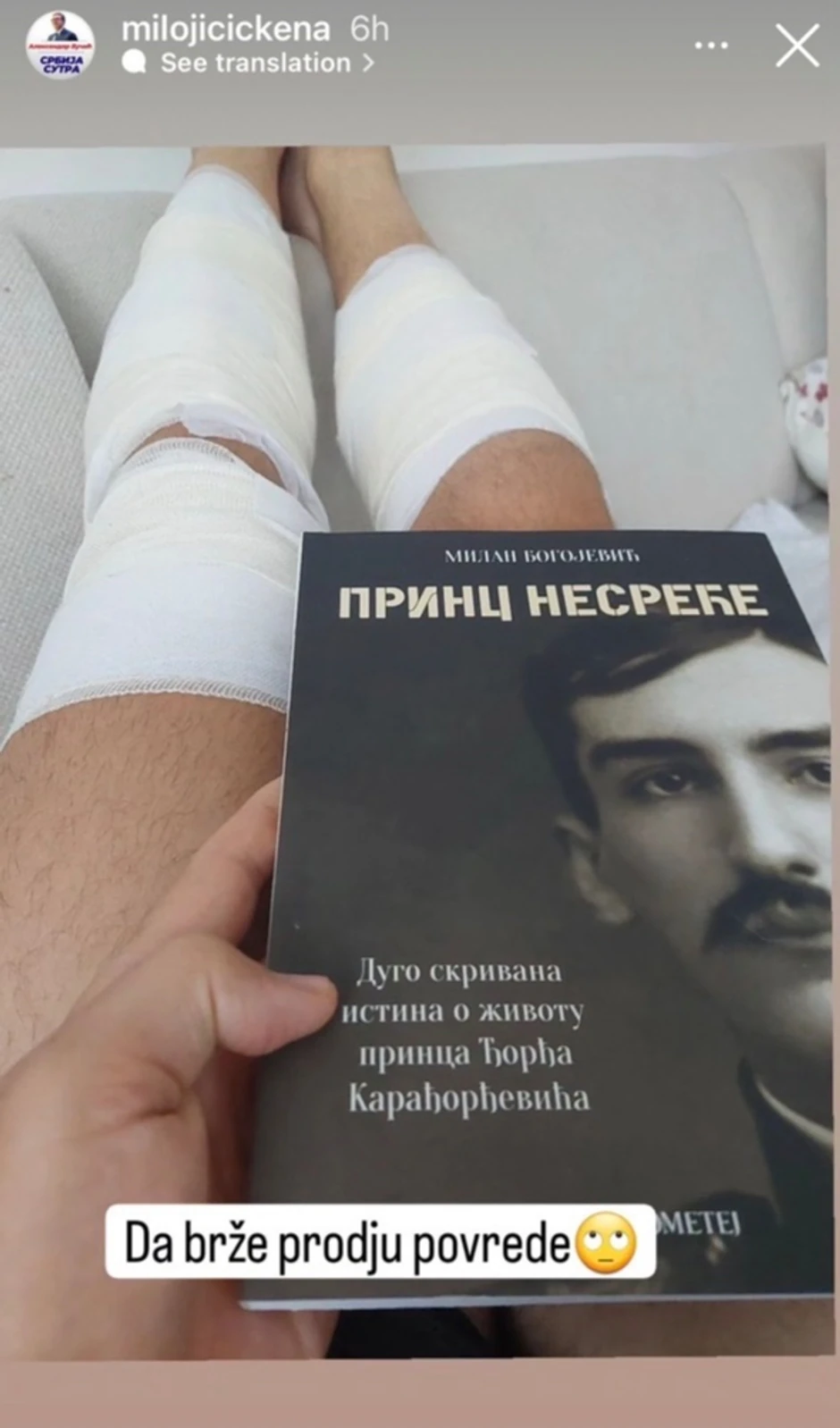 Milojičić je rekao da ujutru odlazi u bolnicu na previjanje i terapiju, a da ostatak dana provodi kod kuće.