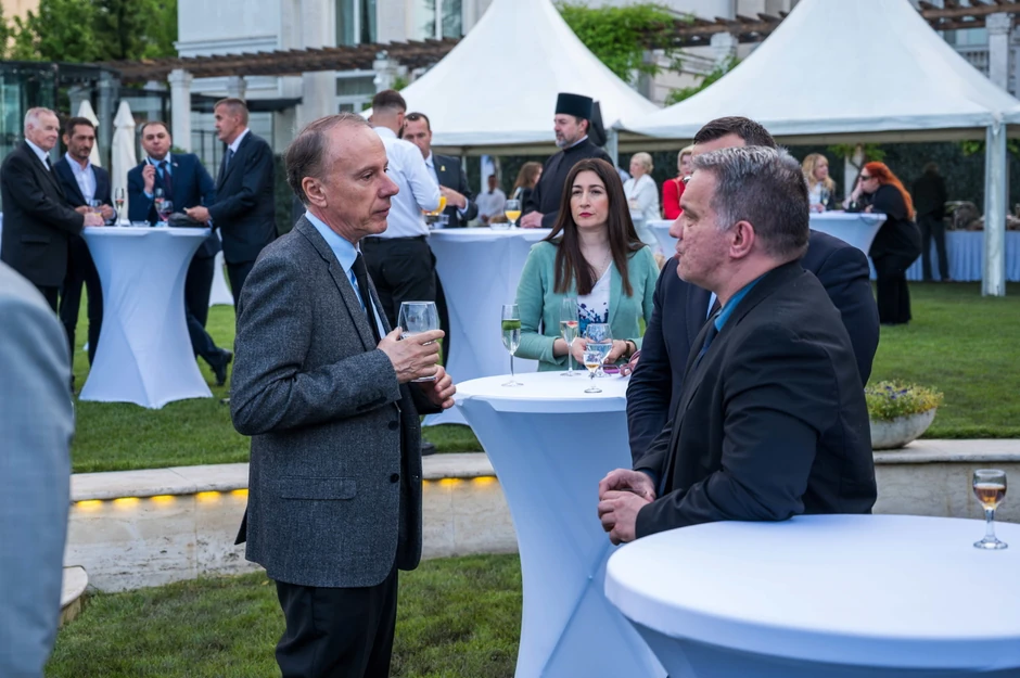 Rektor Vladan Đokić i Dejan Vuk Stanković, ministar prosvete razgovarali uz čašu pića na svečanom prijemu koji je priredio Emanuel Žiofre, šef delegacije EU u Srbiji