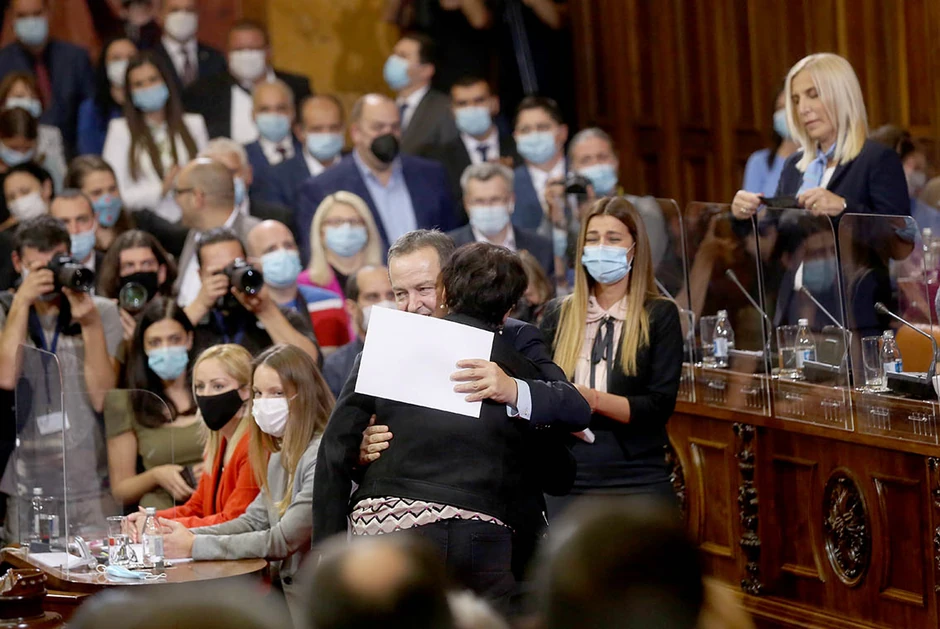 Predsednik Skupštine Ivica Dačić i gotovo svi ministri na čelu sa premijerkom Anom Brnabić ponašali su se u Skupštini kao da nema korone. Prilikom ozvaničenja vlade, svi su se izgrlili i izljubili bez maski. Jedini koji su nosili zaštitu na licu bili su Gordana Čomić i Zlatibor Lončar. Štaviše, prilikom pozdrava sa Lončarom i Dačić je stavio masku. Zanimljivo, da ni epidemiološkinja i nova ministarka za rad Darija Kisić Tepavčević nije mogla da odoli neposrednom, nemaskiranom zagrljaju i poljupcu predsednika Skupštine.