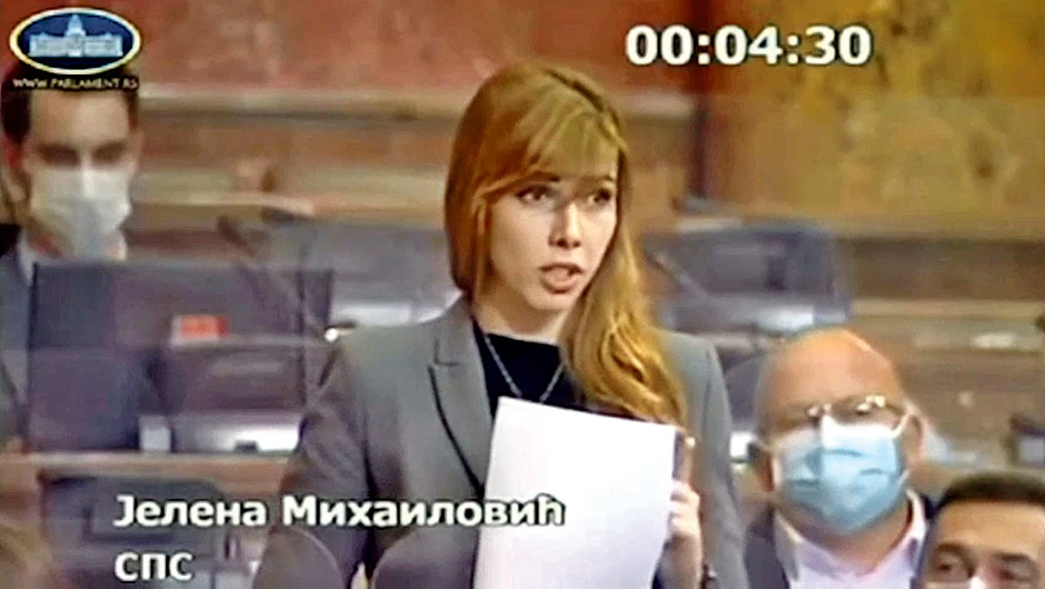 Nova poslanica iz redova SPS-a Jelena Mihajlović nije još zaslužila mesto predsednika vlade, ali se završni deo njenog izlaganja u Skupštini ne može nikako drugo nazvati do premijernim. Po prvi put narodni predstavnik je repovao u parlamentu i ta čast je "pripala" mladoj socijalistkinji.