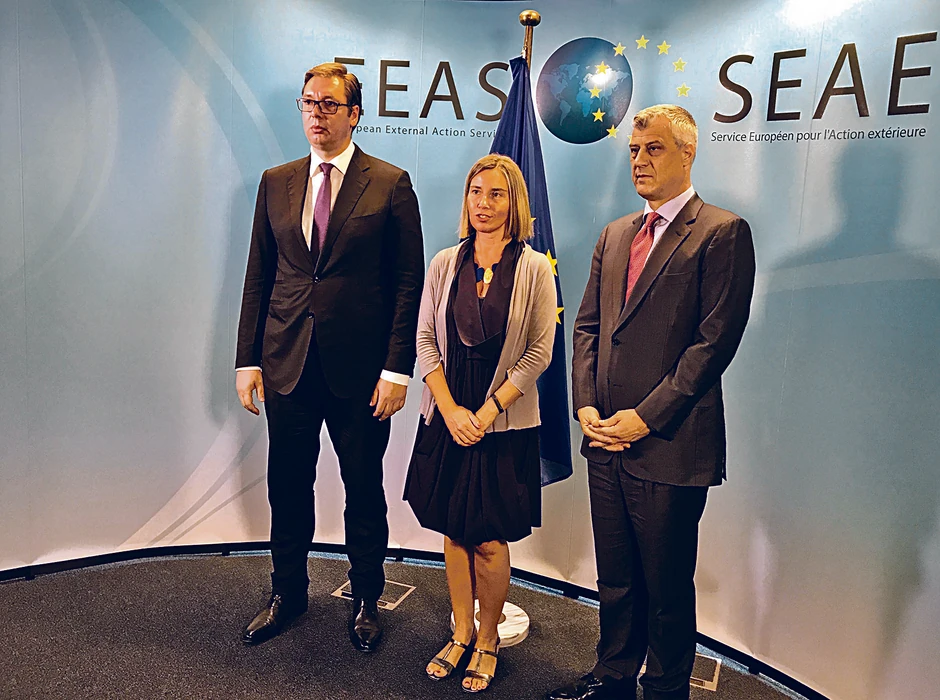 Federika Mogerini, Aleksandar Vučić i Hašim Tači su se u tom sastavu poslednji put sastali 20. novembra, a pre toga 18. jula. Nije mnogo toga napravljeno ove godine. Više je išlo korak napred, dva nazad. Poslednji pucanj u dijalog stigao je iz Prištine kada su uvedene takse na srpsku robu na Kosovu. Prvo od 10 odsto, a ubrzo neverovatnih 100 odsto.