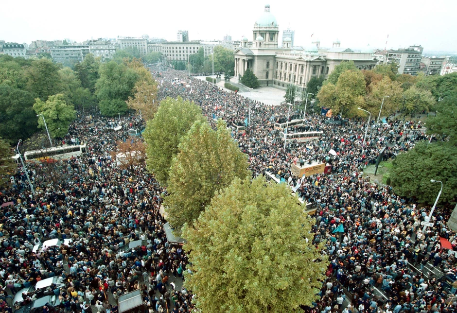 Petooktobarski protest pod motom "Srbija u Beogradu" u centru prestonice, ispred zgrade Doma narodne Skupštine, organizovan je pošto je izborna komisija osporila pobedu kandidata DOS-a Vojislava Koštunice na izborima za predsednika SRJ, održanim 24. septembra 2000. godine. Mada su brojni nezvanični izvori utvrdili da je Koštunica u prvom krugu izbora odneo ubedljivu pobedu nad protivkandidatom Miloševićem, izborna komisija je saopštila da je kandidat DOS-a osvojio 49 odsto glasova i najavila novi, drug krug glasanja koji je trebalo da se održi 8. oktobra. S druge strane, DOS, odnosno koalicija 18 opozicionih stranaka je tvrdila da je Koštunica osvojio 52,54 odsto glasova i odbacila svaku mogućnost održavanja drugog kruga izbora. Zbog toga je DOS zakazao protest u Beogradu, a Miloševiću dao ultimatum da do 5. oktobra u 15 sati prizna poraz. Takođe, ultimativno su zatražene i ostavke čelnih ljudi Radio-televizije Srbije (RTS). Različite su procene koliko se ljudi okupilo na protestu, ali se smatra da je to jedno od najmasovnijih okupljanja građana u prestonici. Pored Beograđana, u ovoj pravoj revoluciji učestvovalo je i na desetine hiljada stanovnika iz unutrašnjosti pa se smatra da je tog dana bilo nekoliko stotina hiljada demonstranata.