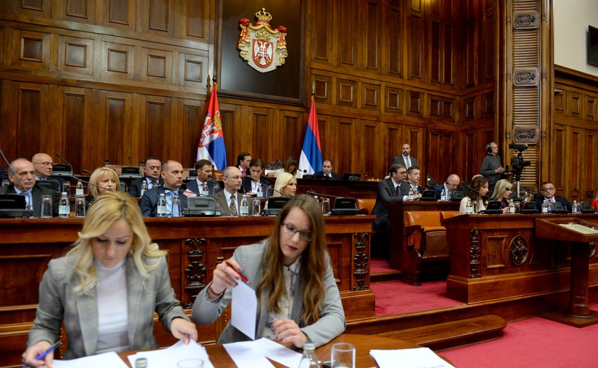 Predsednik Srbije Aleksandar Vučić je rekao u parlamentu, na pitanje poslanikaa SRS Dubravka Bojića zašto stalno igramo crnim figurama "šahovsku partiju" za KiM, da smo na to primorani i da tu partiju igramo sa damom i topom manje.
