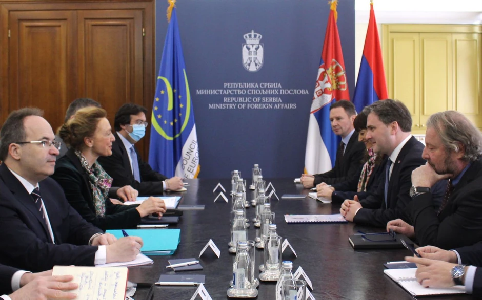 Ministar spoljnih poslova Srbije Nikola Selaković sastao se danas sa generalnom sekretarkom Saveta Evrope Marijom Pejčinović Burić, i poručio da je Srbija veoma zadovoljna saradnjom sa Savetom Evrope, te posebno izdvojio značajnu podršku koju ta organizacija pruža našem reformskom procesu i putu ka punopravnom članstvu u EU.