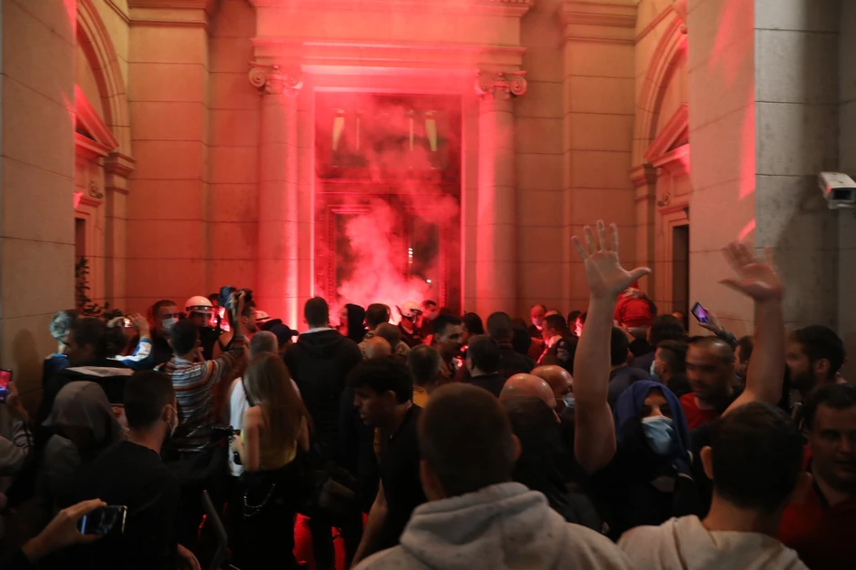 Kada su se demonstranti probili kroz kordon policije i upali u hol Parlamenta, policija je uspela da ih izgura napolje i potisne suzavcem. Ta "bitka" se nastavila oko Skupštine do kasno u noć, a policija je bacila više desetina kanistera sa suzavcem u pokušaju da razbije demonstracije i potisne ih iz centra grada. Pojedini građani su od suzavca trljali oči i čak povraćali, javila je "Blicova" reporterka sa lica mesta.