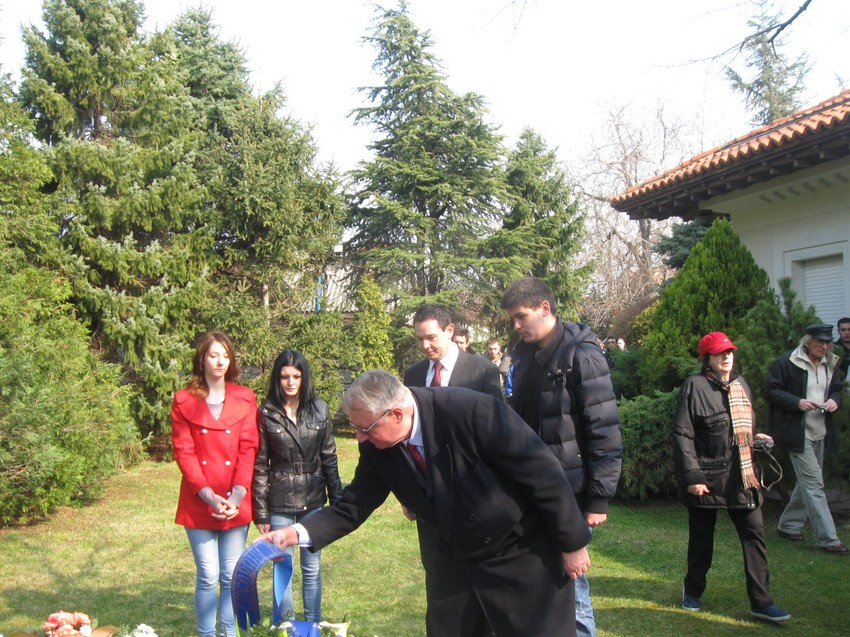 Na čelu delegacije SRS koja je posetila grob Slobodana Miloševića bio je haški optuženik Vojislav Šešelj koji je rekao da je došao da položi venac i da se pokloni senima srpskog predsednika Slobodana Miloševića.