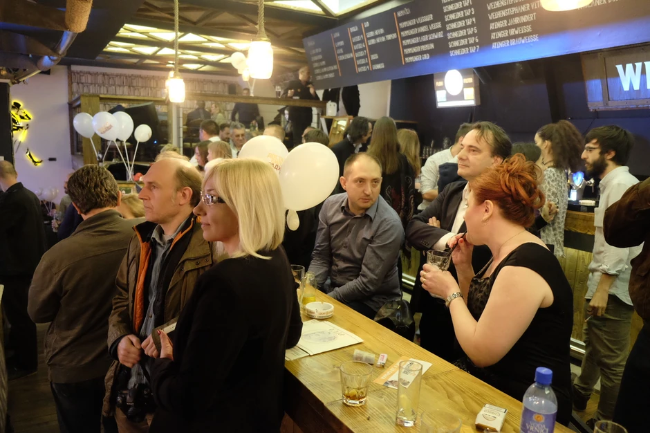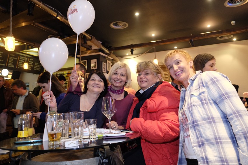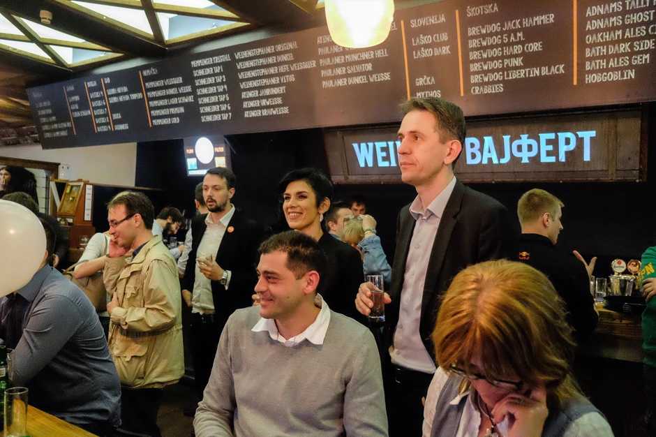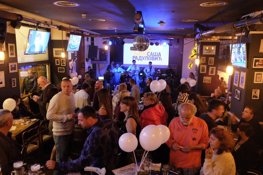 Slavlje u štabu na kratko je prekinuto, da bi se okupljenima obratio predsednik pokreta Saša Radulović.