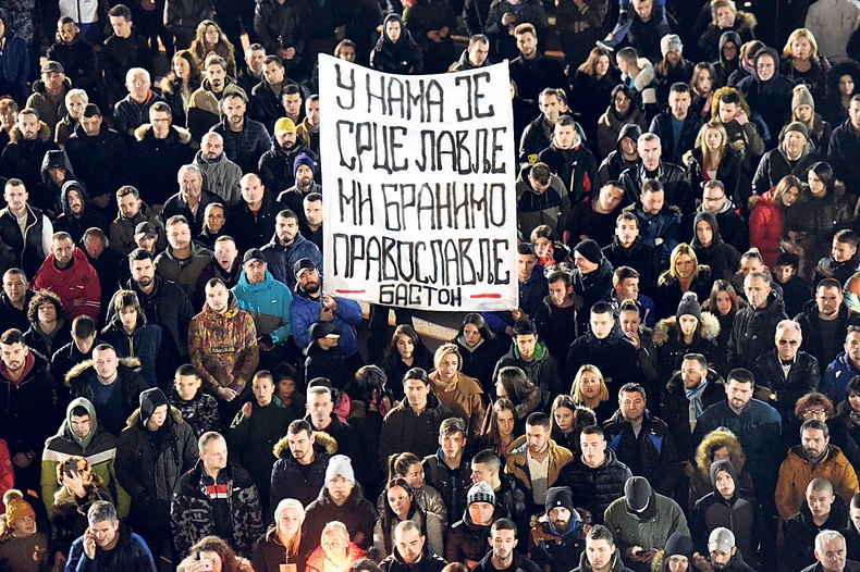 Borba za odbranu svetinja Srpske pravoslavne crkve u Crnoj Gori dostigla je u nedelju uveče vrhunac. Više desetina hiljada građana izašlo je na ulice Podgorice i drugih gradova da protestuje protiv spornog Zakona o slobodi veroispovesti, što je najmasovniji skup u istoriji Crne Gore.