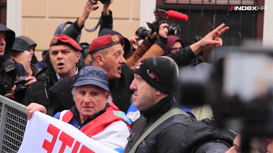 U video-snimku koji je "Blicu" ustupio hrvatski portal "Index", vidi se kako grupa mahom starijih ljudi Vučića naziva četnikom, kako jedna starija gospođa maše rapsećem Isusa Hrista i predviđa "kraj", dok su neki čak i nudili mito policajcima da ih puste da se probiju: