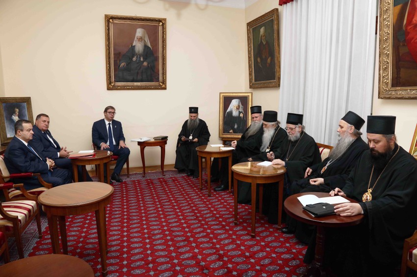Predsednik Srbije je upoznao patrijarha i arhijereje sa ozbiljnim izazovima i pritiscima sa kojima se susreću naša država i narod na Kosovu i Metohiji, navodi se u saopštenju SPC.