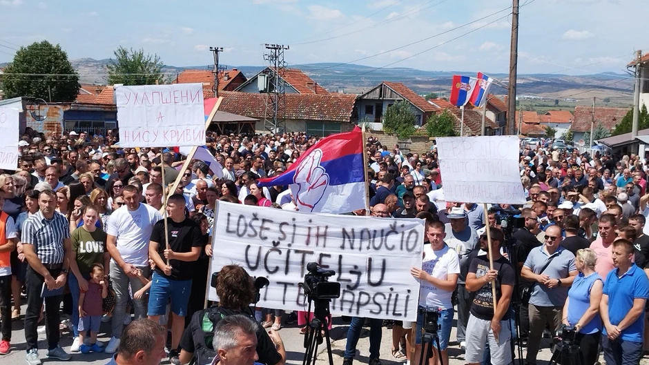 Okupili su se u Pasjanu, naselju kod Gnjilana, gde su uhapšena četvorica Srba, po optužbi za navodne ratne zločine. Na majicama koje nose na protestu piše snažna poruka - "Hapsite jer smo Srbi, nema predaje!" Prisutni su i članovi porodica uhapšenih Srba koji će se i obratiti.