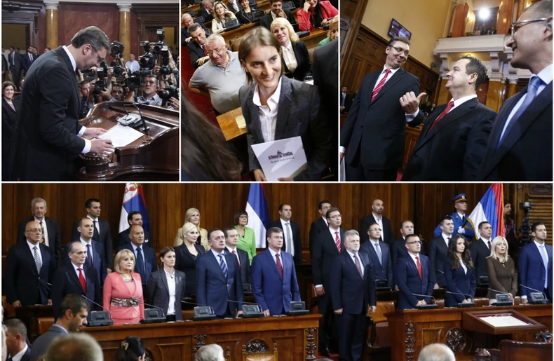 Premijer Aleksandar Vučić i članovi njegovog kabineta položili su zakletvu, čime je počeo da teče mandat nove Vlade Srbije. Nakon polaganja zakletve intonirana je himna Srbije, a na ulasku u parlament bila je postavljena Garda Vojske Srbije.
