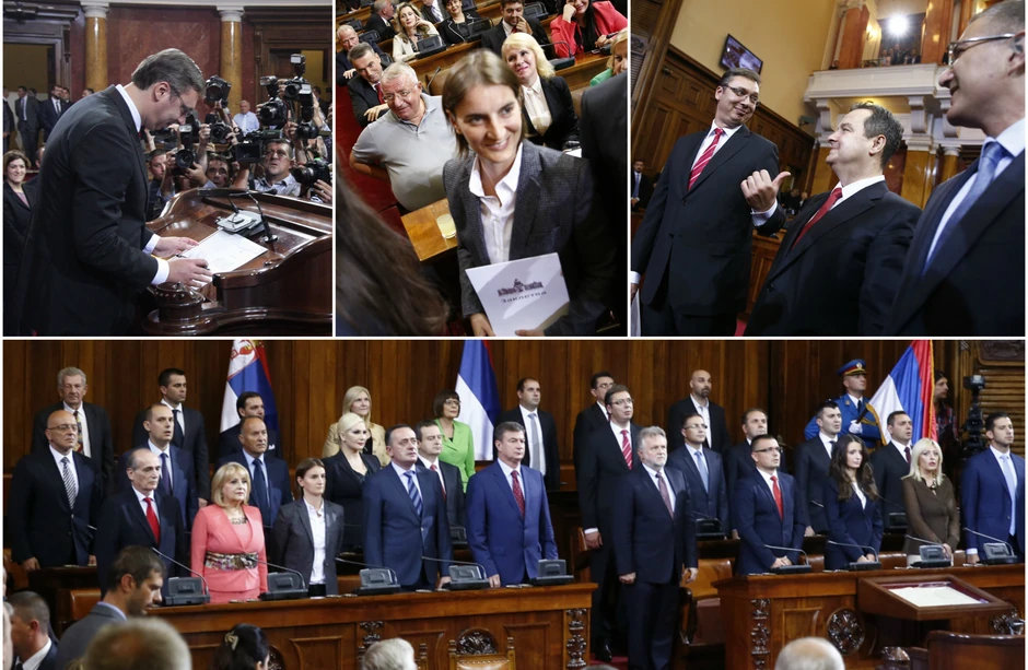 Poslanici Skupštine Srbije izabrali su danas novu vladu premijera Aleksandra Vučića. Premijer i članovi njegovog kabineta položili su zakletvu na svečanoj ceremoniji, čime je njihov mandat počeo da teče, a prvu sednicu imaće sutra u 6.30 sati.