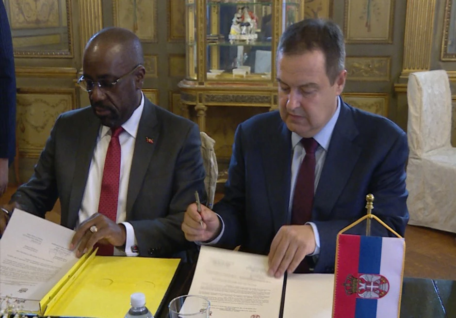 Šef diplomatije Ivica Dačić i ministar inostranih poslova Antigva i Barbuda Čet Grin potpisali su danas u Njujorku zajednički Kominike o uspostavljanju diplomatskih odnosa.