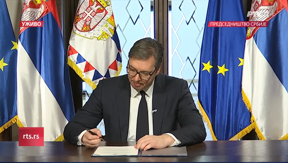- Poštovani grašani Srbije, upravo sam potpisao odluku o raspisivanju izbora za narodne poslanike. Oni su raspisani za 26. april ove godine. Svim učesnicima želim uspeh - rekao je Vučić.