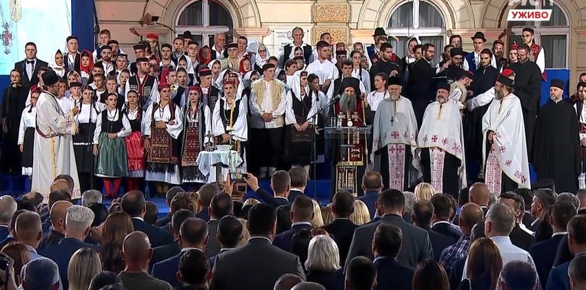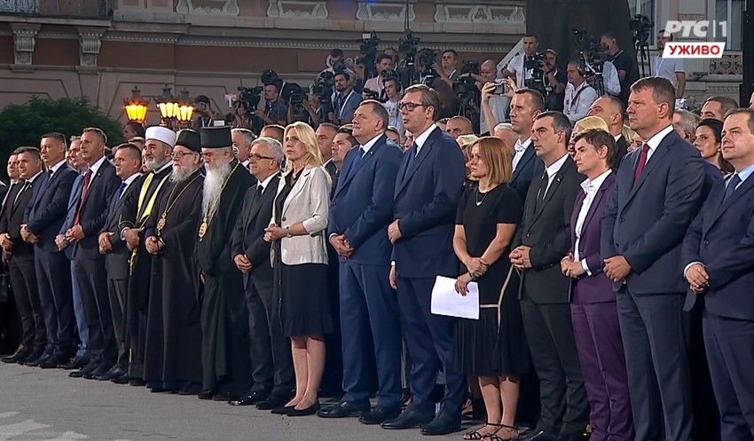 U prisustvu državnog vrha Srbije i rukovodstva Republike Srpske, intonirane su himne RS i Srbije - "Moja republika" i "Bože pravde".