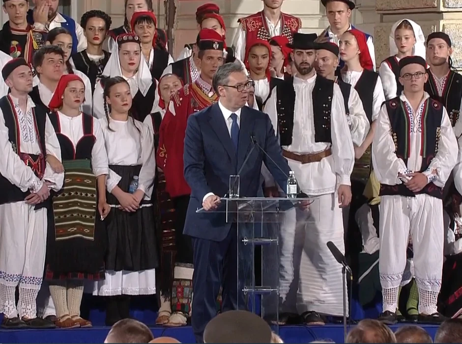 - Mogu da tuku koliko hoće, ali mi više nemamo kud - rekao je Vučić i kaže da ćemo čuvati i braniti našu zemlju. Odbranićemo je i pobedićemo i nemojte da nam pretite više! Oguglali smo na vaše pretnje. Danas smo ovde da pokažemo da Srbija više nije šaka zobi i da nema nameru da savija glavu i da im potvrdimo da zabranjeni grad "Jasenovac" i "Oluja", nisu mit, već činjenice sa kojima živimo - rekao je predsednik.