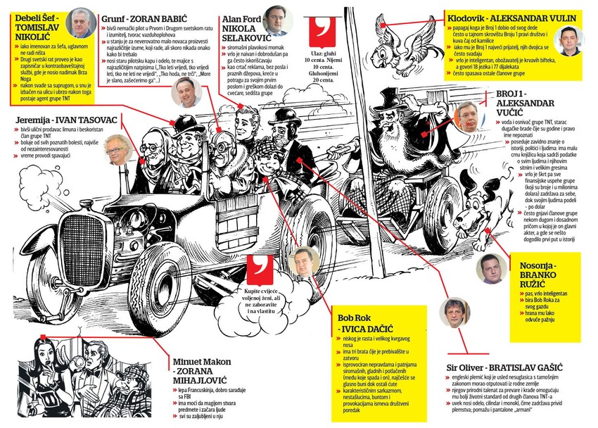 Štivo koje je satirična kritika kapitalizma i svakog korumpiranog i nekompetentnog sistema, ovde je i danas prepoznatljiv način života, a Vlada Srbije često zaliči na grupu TNT iz stripa.