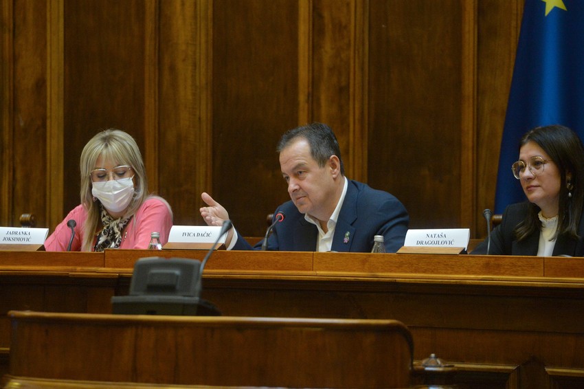 „Pa ja sam i EU sto puta rekao – napišite čime niste zadovoljni“, rekao je Dačić, na šta je ministarka za evrointegracije prokomentarisala da tu nije reč o EU nego o civilnom društvu.