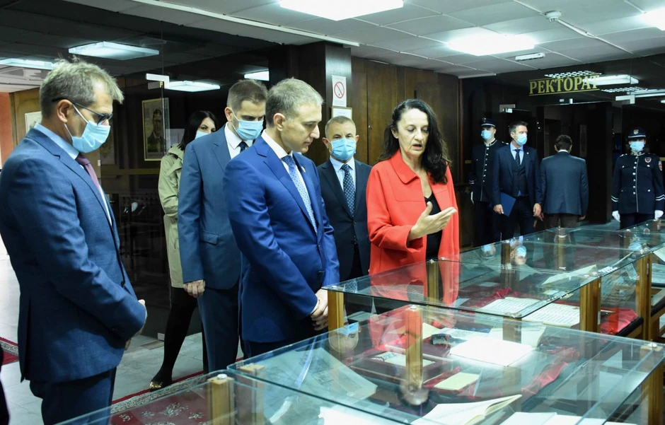 Potpredsednik Vlade Republike Srbije i ministar unutrašnjih poslova dr Nebojša Stefanović obišao je izložbu "Zakonom zaštićene stare i retke knjige" koja je danas otvorena na Kriminalističko-policijskom univerzitetu.