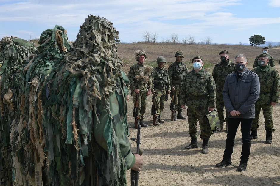 Stefanović je obišao pripadnike Vojske Srbije koji se obučavaju u terenskim uslovima na poligonu "Peskovi" kod Velikog Gradišta gde se, tokom druge polovine marta, istovremeno realizuje obuka polaznika Kursa za snajperiste u organizaciji Centra za obuku Kopnene vojske iz Požarevca, dok Centar za obuku i usavršavanje podoficira iz Pančeva sprovodi aktivnosti iz plana Osnovnog kursa za podoficire.