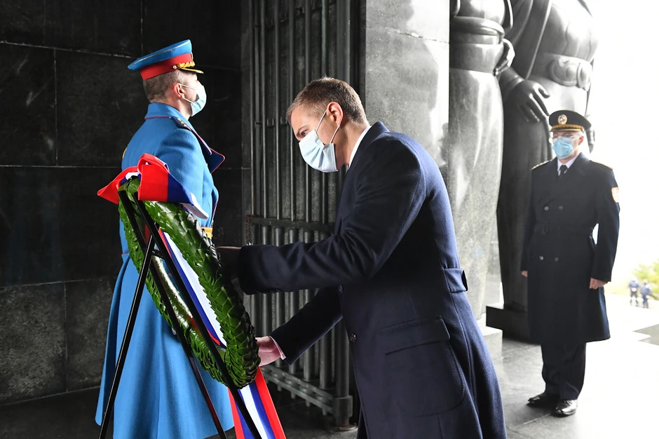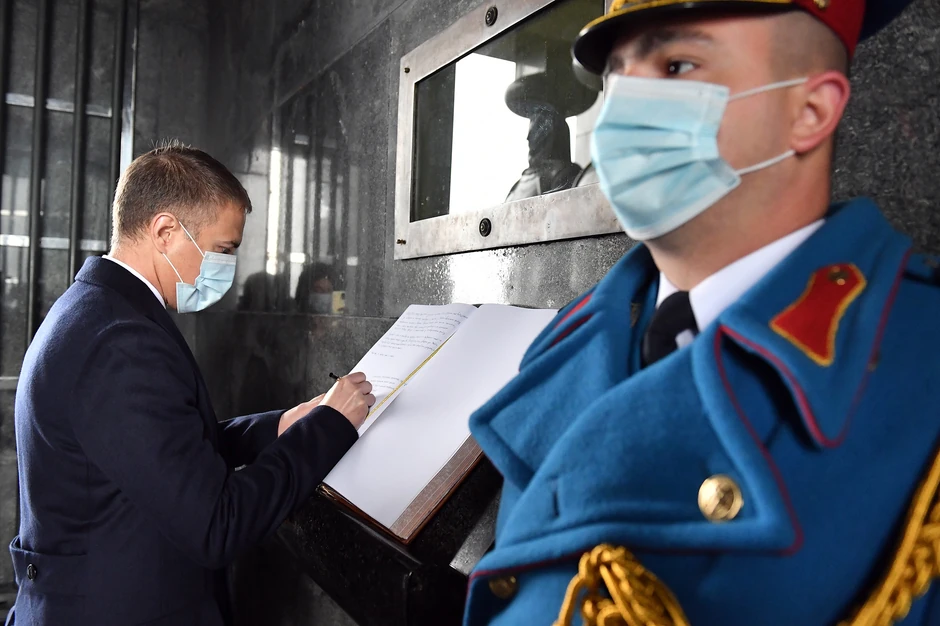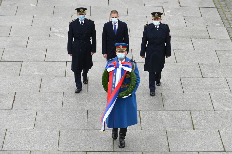 Stefanović je venac položio, u pratnji načelnika Generalštaba Vojske Srbije generala Milana Mojsilovića i načelnika Kabineta ministra odbrane brigadnog generala Siniše Kresovića, uz najviše vojne počasti, himnu Republike Srbije i svečani stroj Garde.