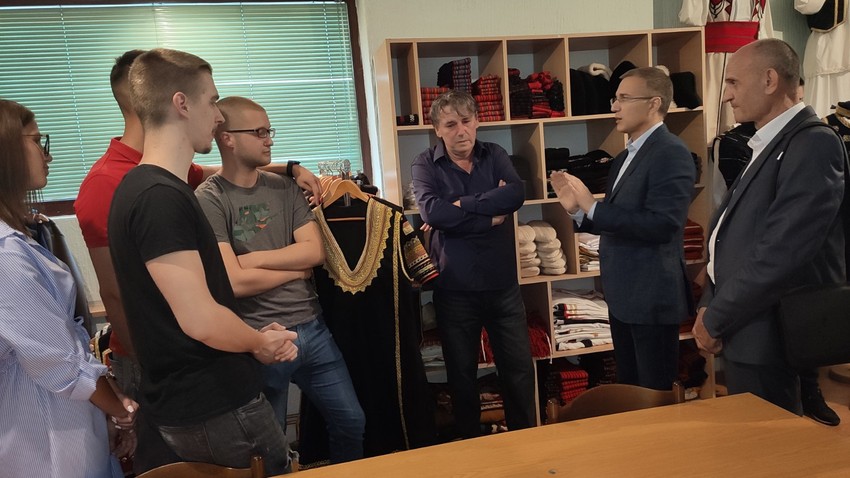 Domaćin je poveo šefa beogradskih naprednjaka i u obilazak radionice u okviru svog domaćinstva u kojoj zajedno sa svojom porodicom šije narodne nošnje.