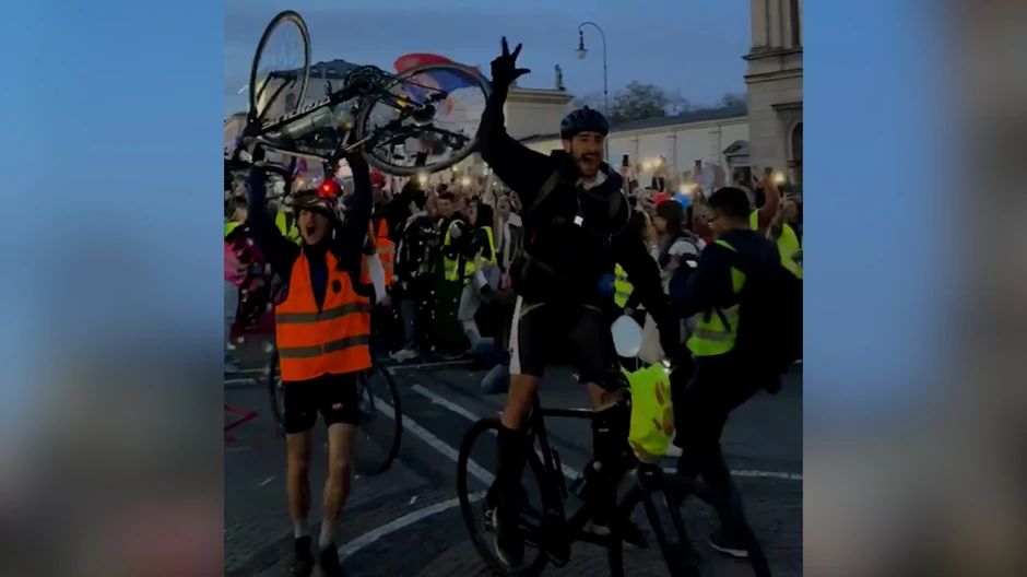 Studenti biciklisti koji su pre devet dana krenuli u Strazbur, stigli su u Minhen, gde im je na Odeonsplatzu pripremljen svečani doček.