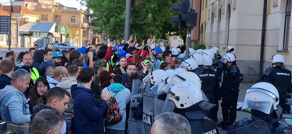 Niški studenti blokirali prvo zgradu Osnovnog suda pa zgradu policije u znak protesta.