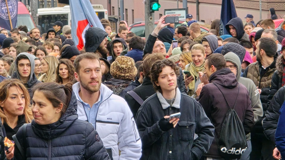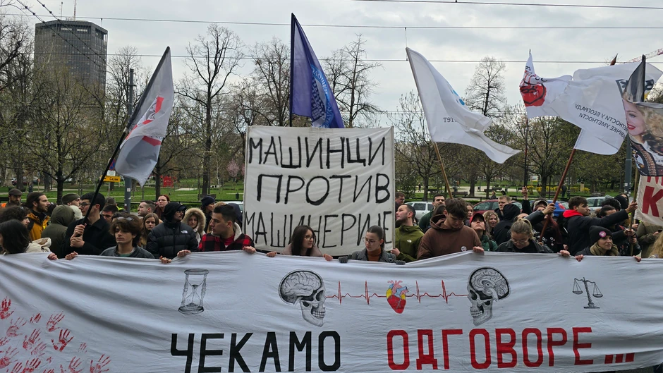 Pre toga bili su ispred Urgentnog centra gde je sve proteklo mirno. Studenti su stajali i tišini, nisu zviždali i nisu pravili buku, a nosili su transparent "tražimo odgovore".