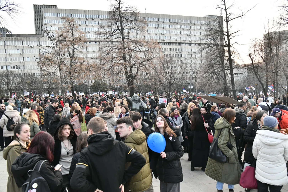 Takođe, okupili su se i Kragujevčani, studenti, srednjoškolci i deo zaposlenih kragujevačkog Instituta za javno zdravlje.