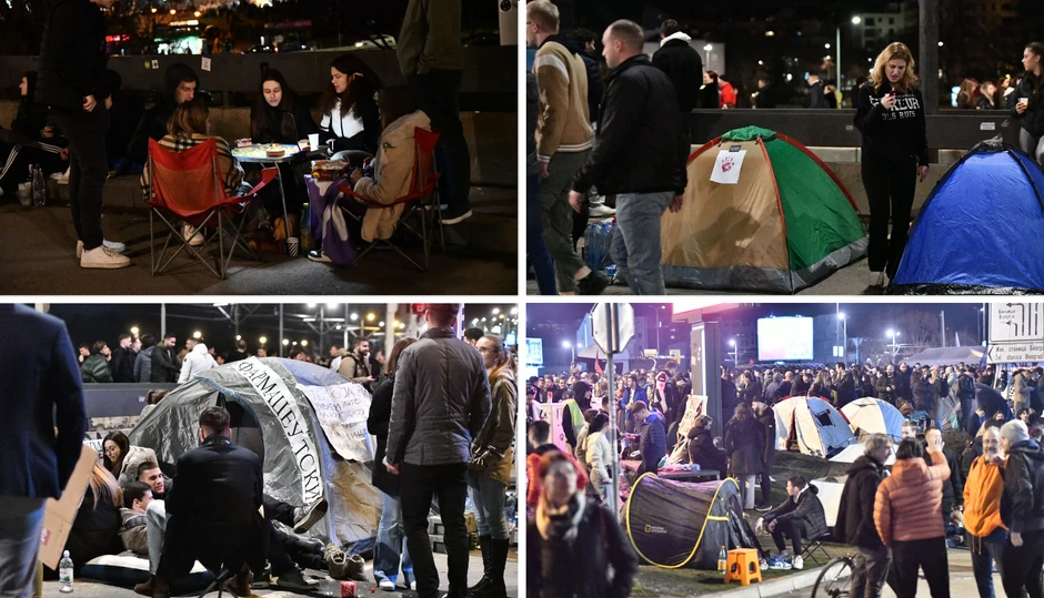 Primećeno je kako jedni studenti odlaze, a drugi dolaze. Sa sobom nose ćebad i vreće za spavanje koje su im potrebne kako bi proveli noć pod vedrim nebom.