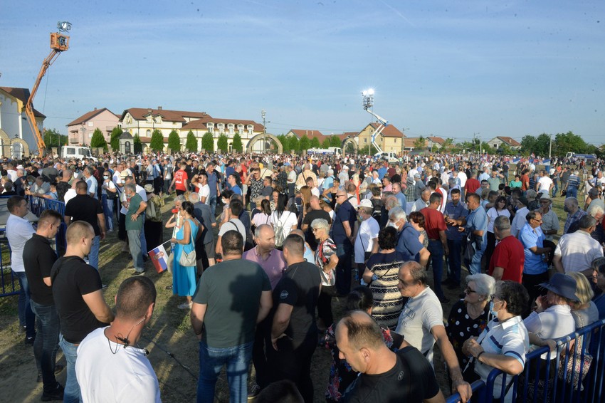 Na platou ispred crkve u Busijama gde se održava svečnost okupljeno je nekoliko hiljada građana iz različitih delova Srbije.