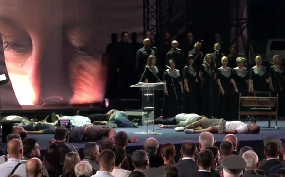 Minutom ćutanja odana je pošta svim stradalim ljudima tokom akcije "Oluja". Intonirane su i himne Republike Srbije i Republike Srpske.
