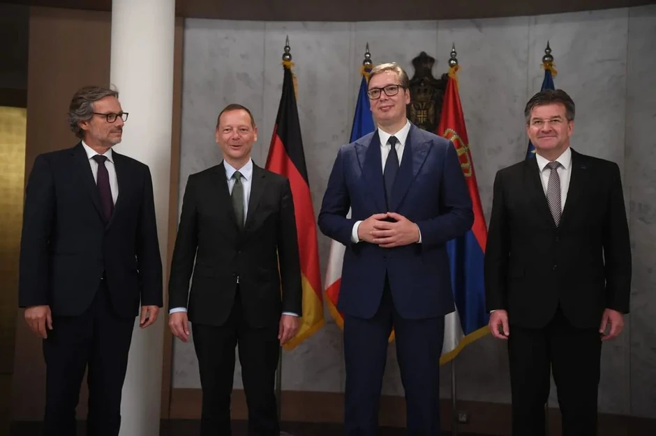- Razgovor o budućnosti Srbije, a nikakvog priznanja Kosova neće biti! Upravo razgovaram sa specijalnim predstavnikom Evropske unije za dijalog Beograda i Prištine i druga regionalna pitanja Zapadnog Balkana Miroslavom Lajčakom i sa savetnicima za spoljnu i bezbednosnu politiku Republike Francuske i Savezne Republike Nemačke, Emanuelom Bonom i Jensom Pletnerom, uvek spreman na kompromisna rešenja, u skladu sa Ustavom Republike Srbije i Rezolucijom 1244 SB UN. Nema predaje! Živela Srbija - napisao je Vučić na Instagram nalogu "budućnostsrbijeav".