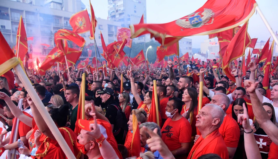 Okupljeni, osim zastava Crne Gore, nose i zastave SAD, EU, Ukrajine, prenose podgoričke Vijesti.