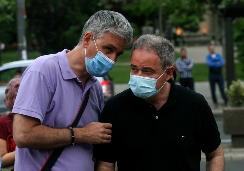 Na kraju tribine, učesnici i okupljeni su aplauzom pozdravili lidera Dveri Boška Obradovića i njegovog kolegu Ivana Kostića koji štrajkuju glađu ispred Narodne skupštine.