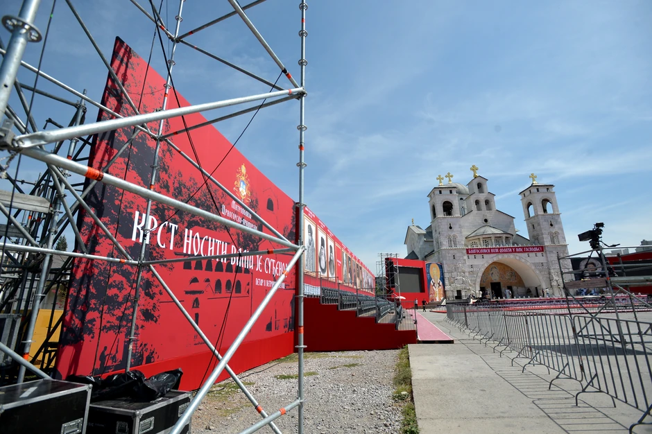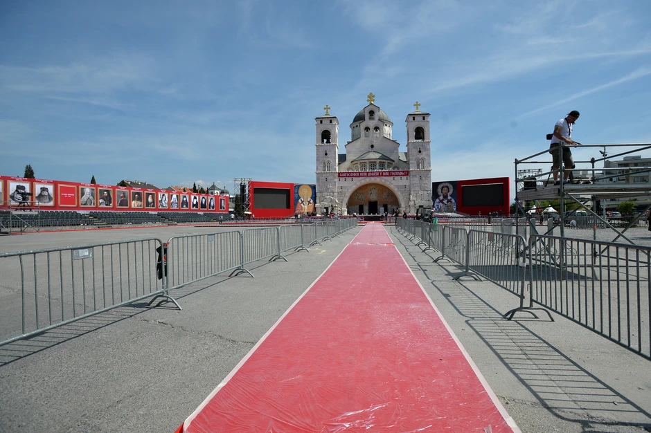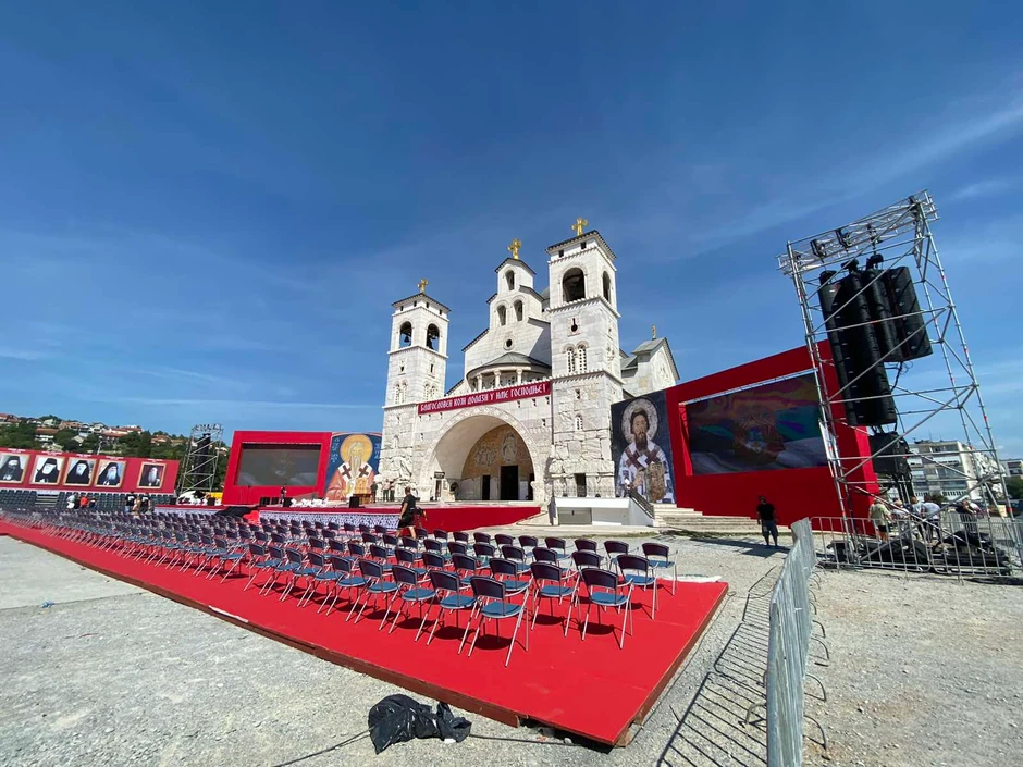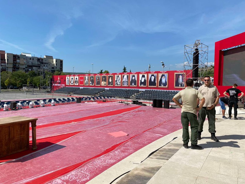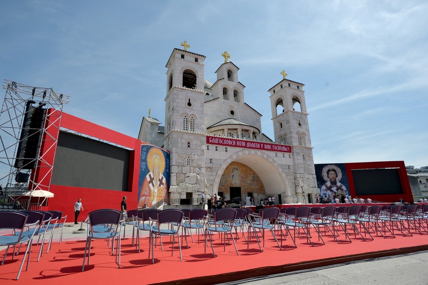 Kako javlja reporter Blica, ispred hrama su postavljene montažne tribine i stolice.