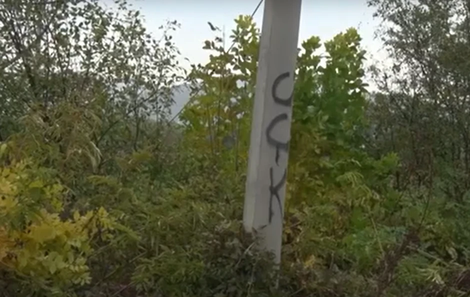 Grafiti su ispisani na stubovima duž puta koji vodi za selo Slovinje, nastanjeno Albancima.