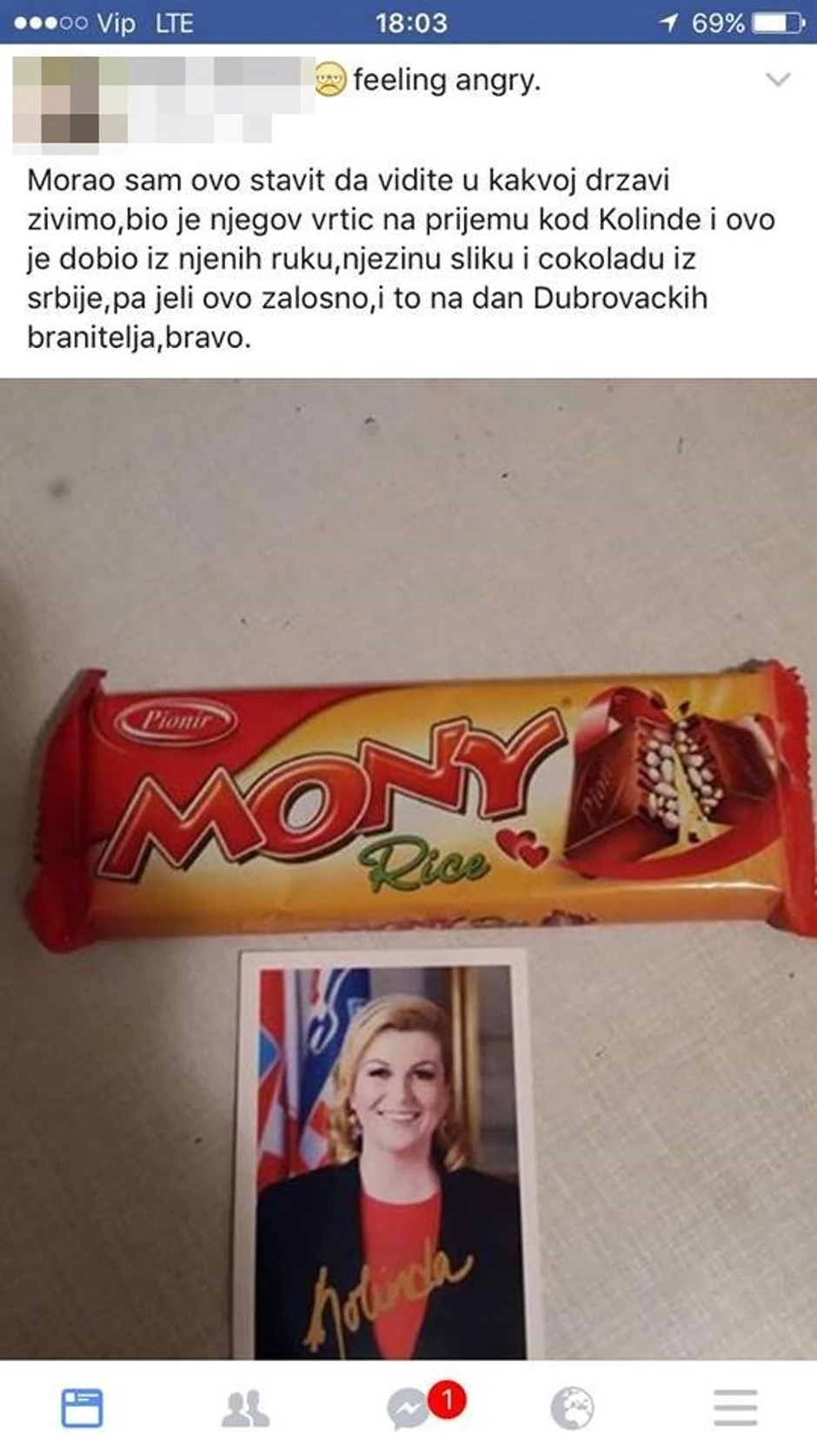 „Kolinda Grabar-Kitarović, predsednica Hrvatske, ima novi nadimak – Čokolinda. Ovako je bilo: na 25. godišnjicu bombardovanja Dubrovnika od strane jugoslovenske vojske predsednica je posetila taj grad na Jadranu. U jednom vrtiću je delila čokolade. Kasnije – kada su čokoladice odavno bile pojedene – roditelji su primetili da se radilo o srpskim proizvodima. Mediji su napravili skandal, Grabar-Kitarović se izvinila. Žao joj je, rekla je, što nije poklanjala hrvatske proizvode. Čokogejt je tek jedna od iritacija između Hrvatske i njenih suseda. To su simptomi koji pokazuju da Hrvatska, novajlija u EU, nije u stanju da preuzme ulogu suverenog predvodnika i podrži srpske i bosanske komšije na trnovitom putu ka Briselu“, piše Ernst.