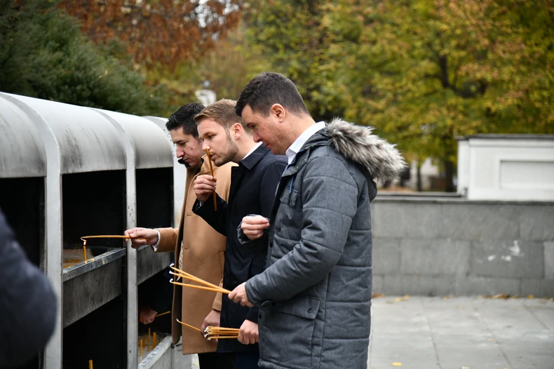 Stanivuković je sveću počivšem patrijarhu zapalio kod Hrama Svetog Save.