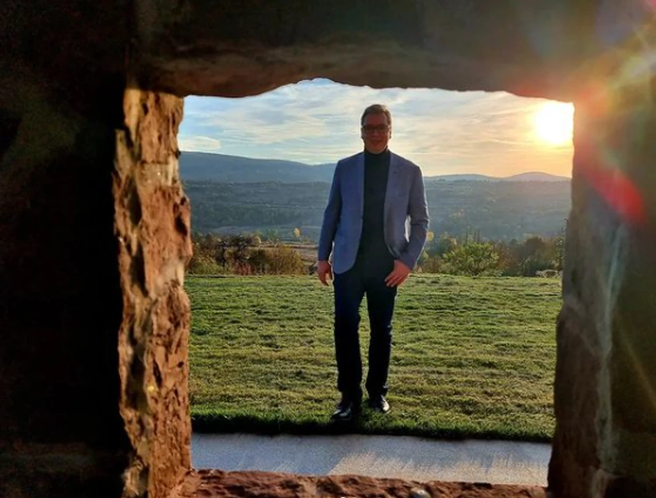 Predsednik Srbije Aleksandar Vučić obilazi radove na Moravskom koridoru, a na Instagramu je objavio fotografiju uz tekst: "Kasnimo svuda, ali je naša Srbija toliko lepa da jednostavno ne možete da joj odolite".