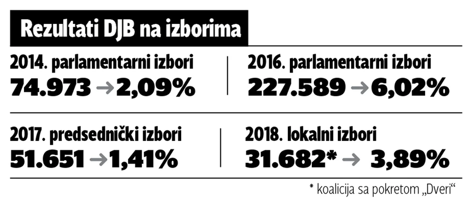 Tada je DJB bio najprijatnije iznenađenje pošto je samostalno osvojio najviše glasova od svih proevropskih opozicionih stranaka i bez poteškoća ušao u skupštinu. Godinu dana kasnije, donedavni lider pokreta Radulović je na predsedničkim izborima izgubio skoro pet odsto glasova podrške da bi ove godine na beogradskim izborima pokret u koalciji sa „Dverima“ doživeo krah jer nije prešao cenzus. Nakon ovih neuspeha usledio je i egzodus istaknutih članova i poslanika - Aleksandra Stevanovića, Nenada Božića, Vladimira Đurića, Tatjane Macure i ostalih, što mnogi ocenjuju kao kraj pokreta iako je DJB nedavno dobio novog predsednika - narodnog poslanika Branislava Mihajlovića iz Bora.