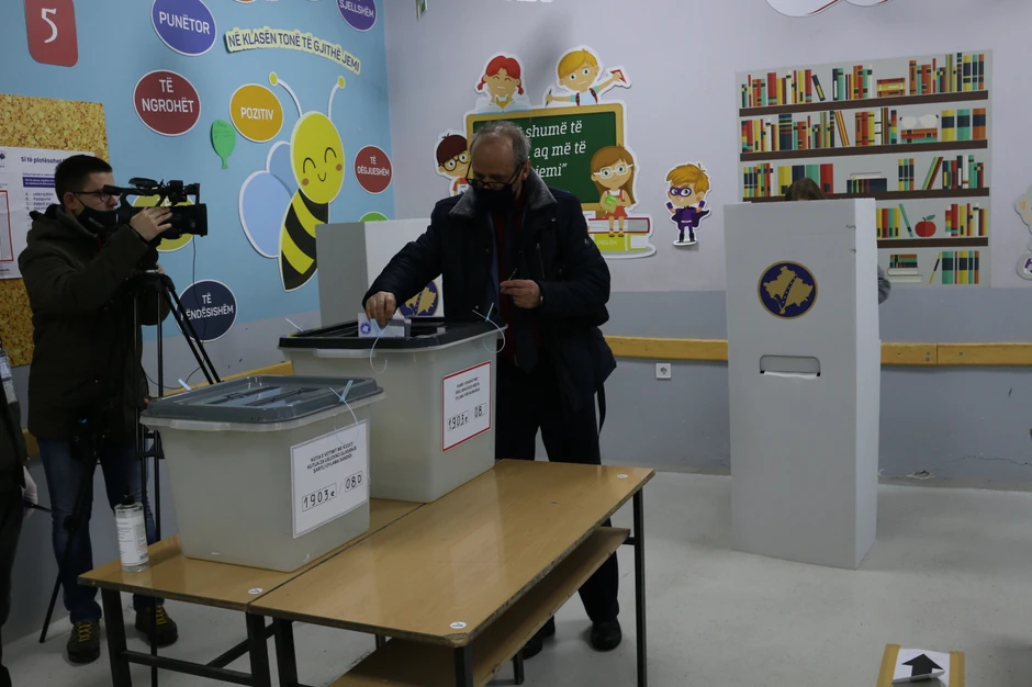 Sin bivšeg predsednika Kosova Hašima Tačija, Endrit, udaljen je sa birališta zbog oznake Demokratske partije Kosova na zaštitnoj maski i natpisa “Sloboda ima ime” na majici koju je nosio.