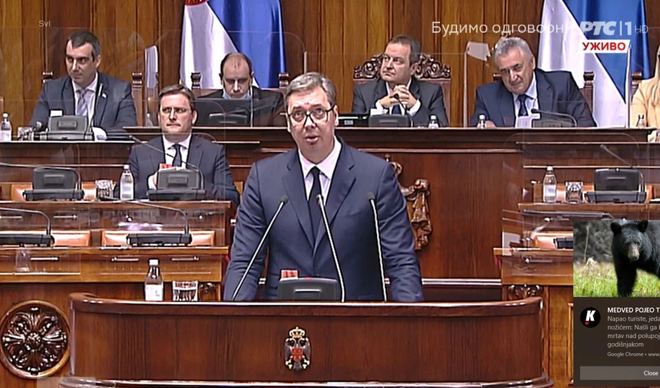 - Nije vreme za svečarsko raspoloženje, nije vreme za prevelika očekivanja ili očekivanja koja nisu u sladu sa realnošću koja nas okružuju. Reč je o pitanju koja je u podtekstu gotovo svake naše političke teme, svakog našeg državnotvornog napora, ali mnogo dublje sustinskog, identitetskog, ekonomskog, i svakog drugoh pitanja - naveo je predsednik Srbije.