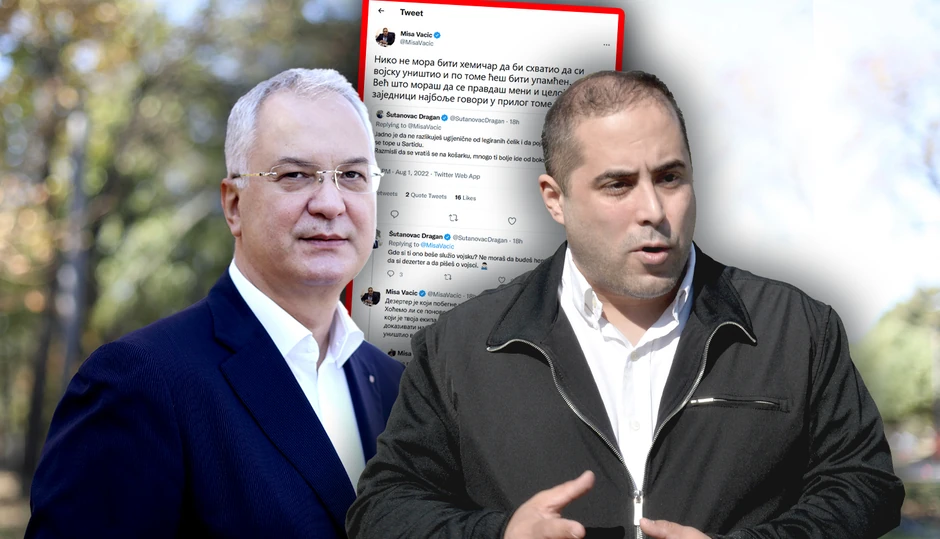 Ko je dezerter, a ko izdajnik - pitanja su koje je iznedrila najnovija tviter rasprava bivšeg ministra odbrane i nekadašnjeg predsednika DS Dragana Šutanovca i lidera "Srpske desnice" Miše Vacića. Svađa je otišla toliko daleko da ni jedan ni drugi nisu štedeli reči, a došlo se i do toga da je Vacić "počašćen" i nadimnkom "Miša P***".