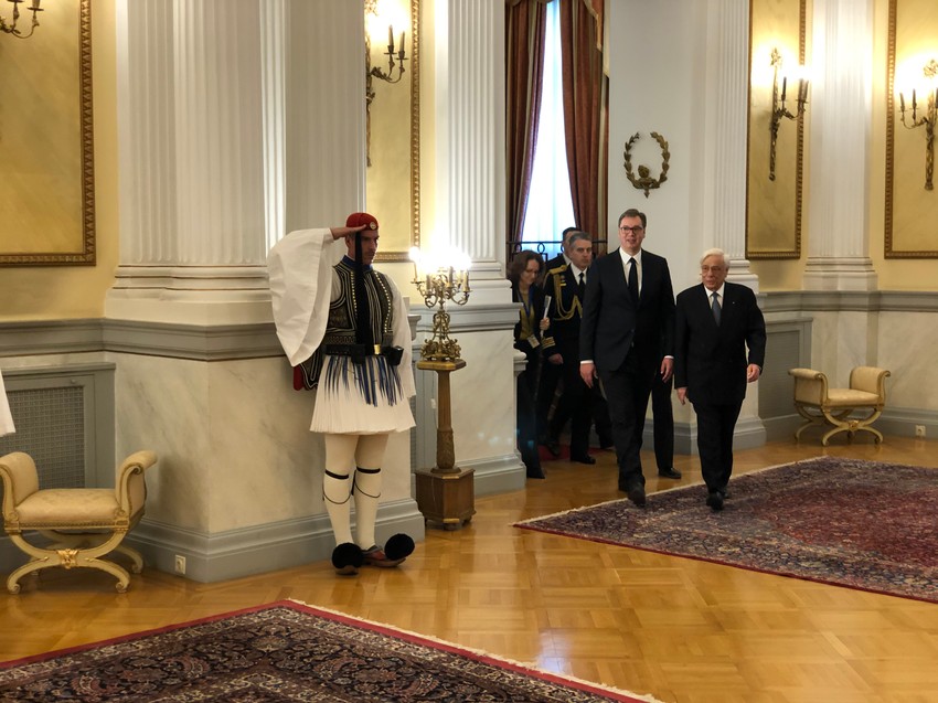 Predsednik Srbije Aleksandar Vučić, koji je juče doputovao u zvaničnu posetu Grčkoj, sastao se danas sa grčkim predsednikom Prokopisom Pavlopulosom, sa kojim je razgovarao o bilateralnim odnosima dve zemlje i saradnji.