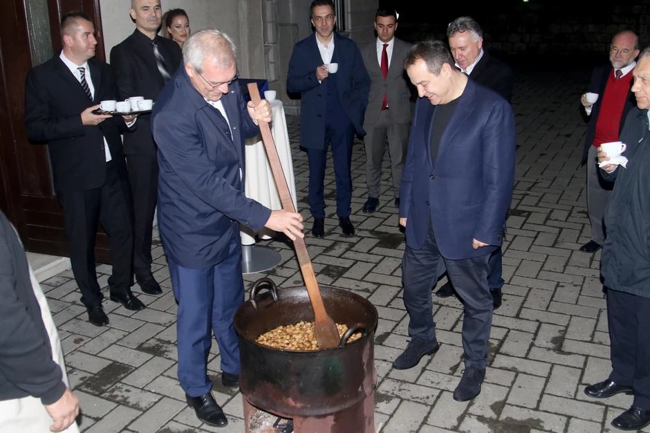 U znak sećanja na pomenuti praznik ministar Dačić i gost iz Rusije su se oprobali u pravljenju, a potom i degustaciji tradicionalnih mesnih specijaliteta.