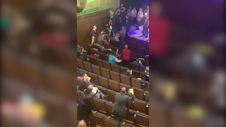 "Blic" je došao u posed i snimka koji beleži trenutke koji su prethodili incidentu: opšti metež, gužva, povici - sve ono što ne bi trebalo da predstavlja "obraz" najdugovečnije demokratske partije u Srbiji.